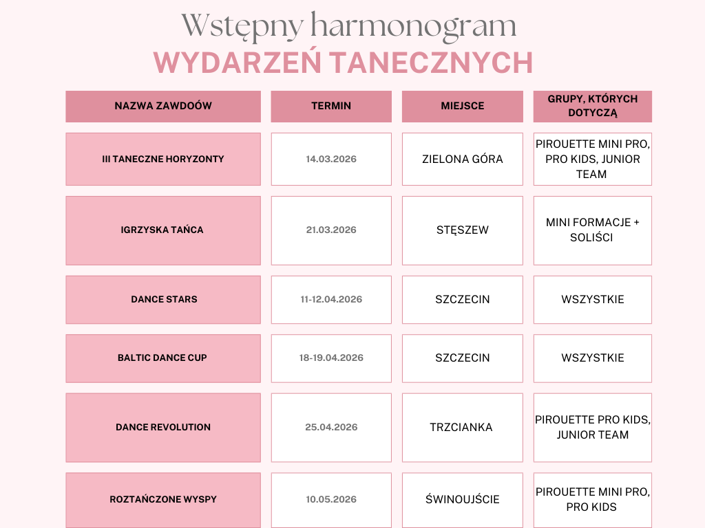 Harmonogram wydarzeń tanecznych