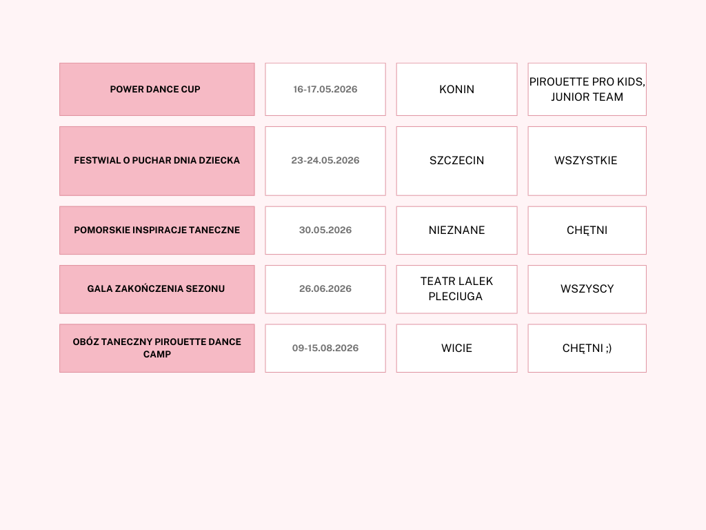 Grupy: Pirouette Mini Pro, Pro Kids, Junior TeamIgrzyska Tańca